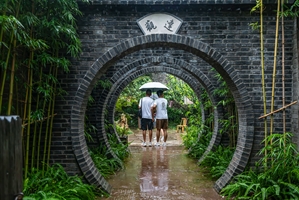 老街雨中景