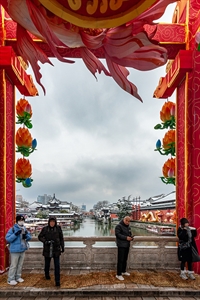 雪后的夫子庙文德桥上