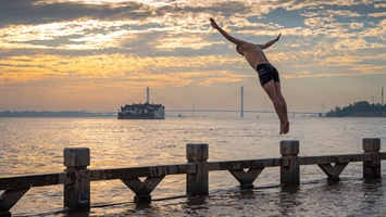 洪峰中的晨泳人+侯刚峰