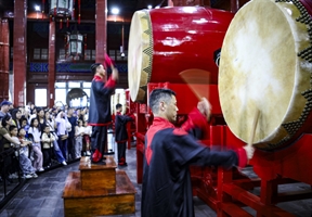 鼓楼击鼓报时表演
