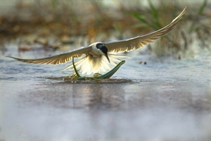 2026年2月17日,大年初一,冬泳爱好者在汉江岸边的浅水中,身着专业装备,姿态舒展、笑容灿烂,背景是襄阳的城市天际线。展现了冬泳群体不畏严寒、享受运动的活力,也体现了襄阳市民亲近自然、积极健康的生活方式。